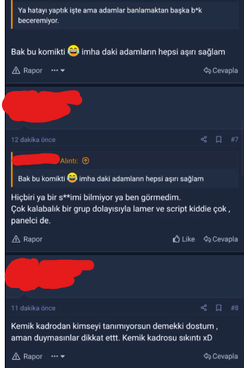 “Kemik kadrosan kimse tanımıyorsun demekki dostum, aman duymasınlar dikkat ett. Kemik kadrosu sikinti XD” diye uyarılmasına rağmen noname üyeleri forumda tuttukları için cezayı abileri çekti.